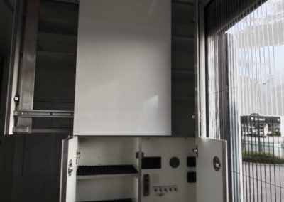 - Stockage externe 40 litres (2×20) essence pour groupe électrogène