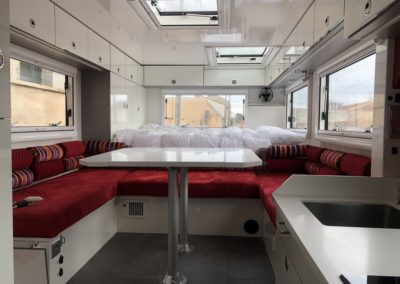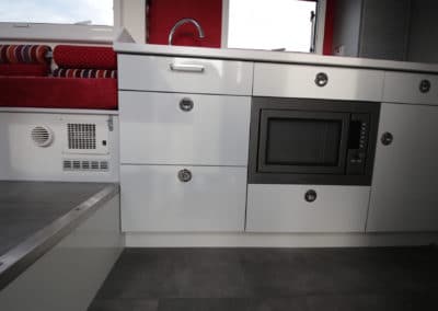 - De nombreux rangements grâce aux coffres sous les sièges du salon, sous le lit, ainsi que de nombreux placards en hauteur et penderie